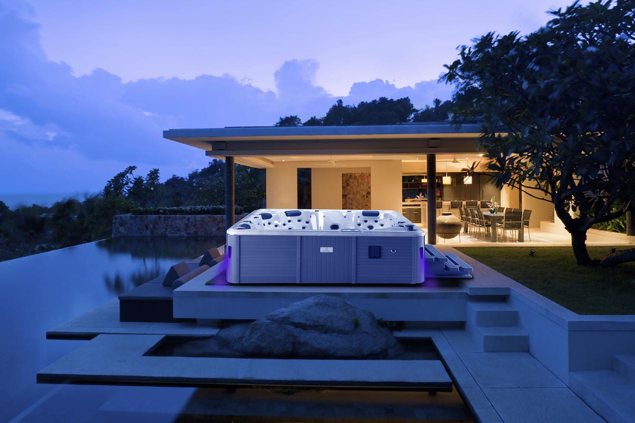 Vores First Class er en smuk og gennemtænkt udespa. Den forstærker hele spaoplevelsen med sine 4 siddepladser og 2 liggepladser. Med denne spa, er der plads til at hele familien kan slappe af sammen.