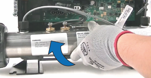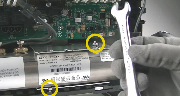 - Fjern de 2 møtrikke som sidder på varmelegemet