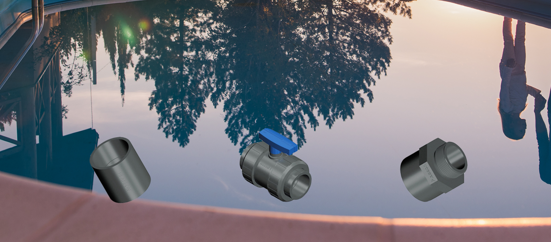 Vi har de mest almindelige fittings og pool parts. Reservedele og fittings til montage af swimmingpools, hvis du lige står og mangler en reduktion, en kuglehane, et T-stykke, en kontraventil eller andet.