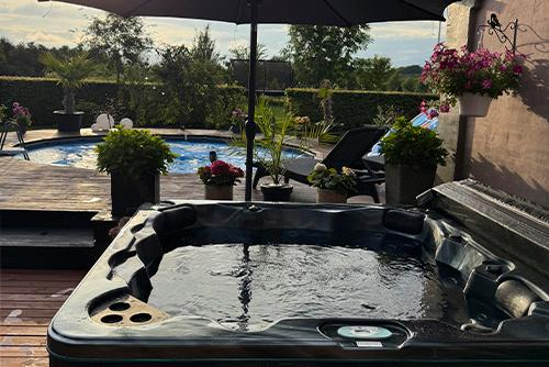 Her er et billede af vores nye Infinity Spa, som vi fik leveret af Denform i maj måned. Spaen bruges ofte af hele familien på seks personer og vi syntes, at det er den bedste investering i velvære, som vi nogensinde har gjort. I løbet af sommeren bliver spaen nabo til vores nye saunahytte og på den måde får vi vores helt egen wellness center lige udenfor døren😊