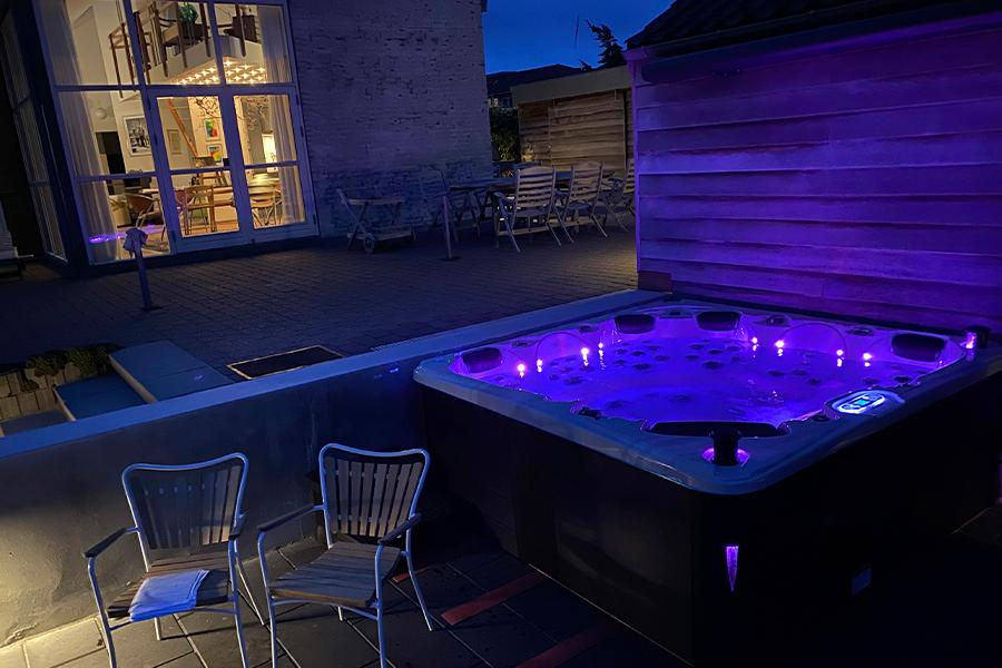 I slutningen af januar ankom vores nye udespa fra Jer. Vi bor på 5 sal i midten af København, og havde egentlig ikke overvejet muligheden før vi opdagede at I havde en Spa til 2 personer. En kran fik den på plads, og så var vi kørende. Vi elsker vores Spa, den har afgørende løftet vores livskvalitet… at sidde sammen i al slags vejer i 40 grader varmt pulserende vand, eller helt stille alene under stjernerne… Og så skal I have tak for en udsøgt betjening… det er altid en fornøjelse at ringe til Jer og møde Jeres altid positive og venlige personale. 6 ud af 6 stjerner fra en lykkelig kunde