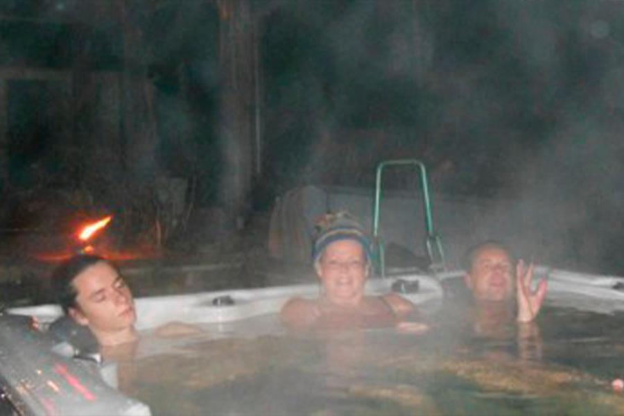 Fantastisk kombination! 0°C udenfor, 40°C i udespaen, oplyst nattehimmel og hele familien samlet.