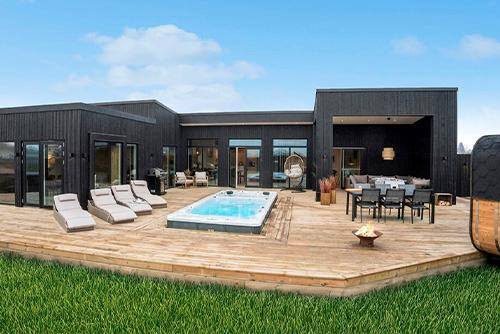 Et fantastisk udlejnings sommerhus med DenForm swimspa, DenForm sauna og DenForm badeværelser. Et fantastisk samlingspunkt for familie og venner.