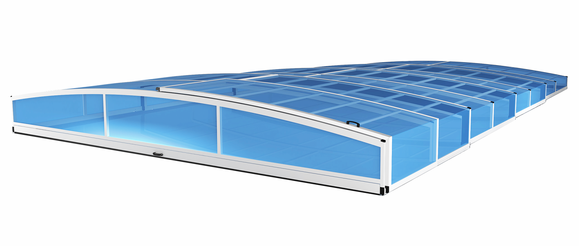 Pooltag Leia er altid udstyret med klar plast, 4 mm polycarbonatplast. Dertil er der ekstra flade komfortskinner med en højde på kun 12 mm. Pool overtræk har automatisk sektionslåsning med nøgle, så man hurtigt og nemt kan åbne og lukke pool overdækningen.