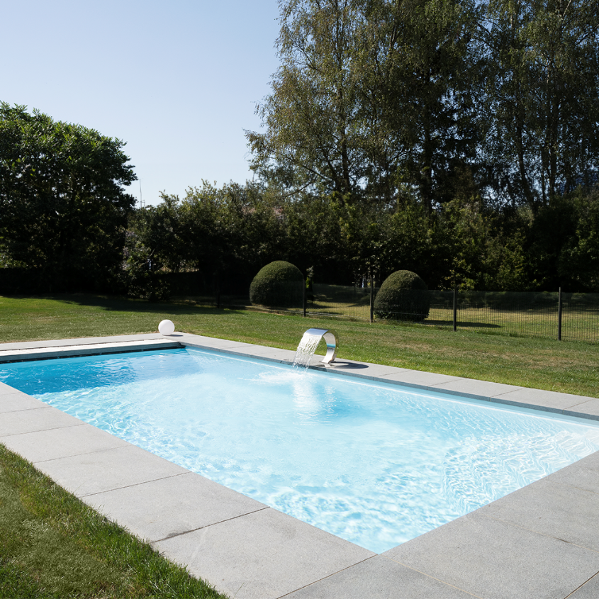 Indhyl din pool i en aura af subtil elegance med vores Pearl Grey farve. Den afdæmpede og diskrete tone tilføjer et strejf af raffinement til din udendørs oase, og skaber et diskret mesterværk af tidløs stil. Når solen danser på vandets overflade, reflekterer Pearl Grey med delikat glans, forstærkende dens naturlige skønhed.