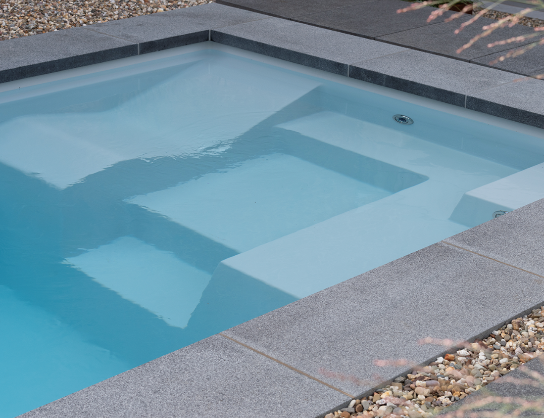 Indfør en uovertruffen grad af luksus i din pooloplevelse ved at vælge blandt de tre eksklusive farvevariationer. Hver nuance er omhyggeligt sammensat for at forstærke det krystalklare blå vand, og tilføre din glasfiber pool en aura af forfinet elegance.